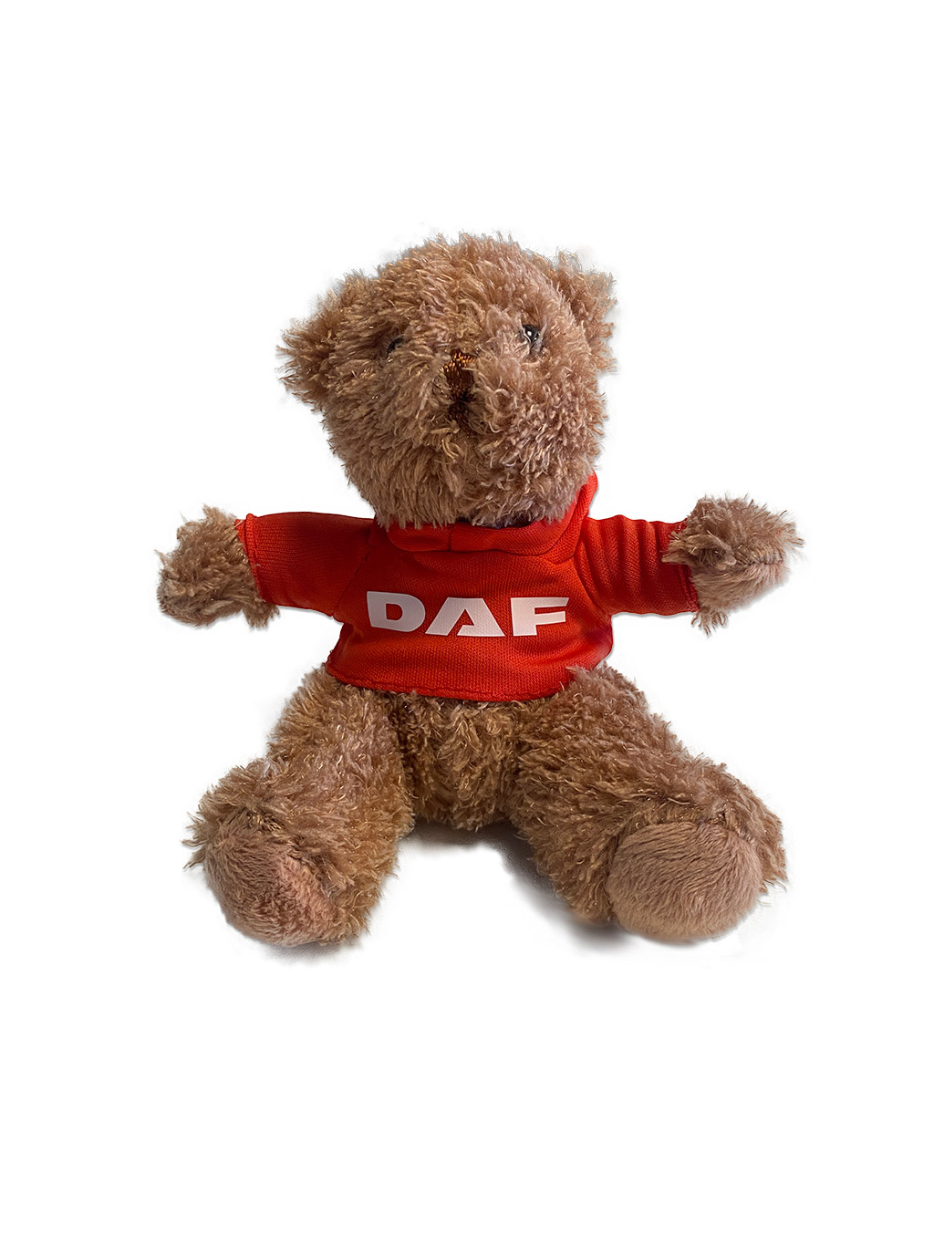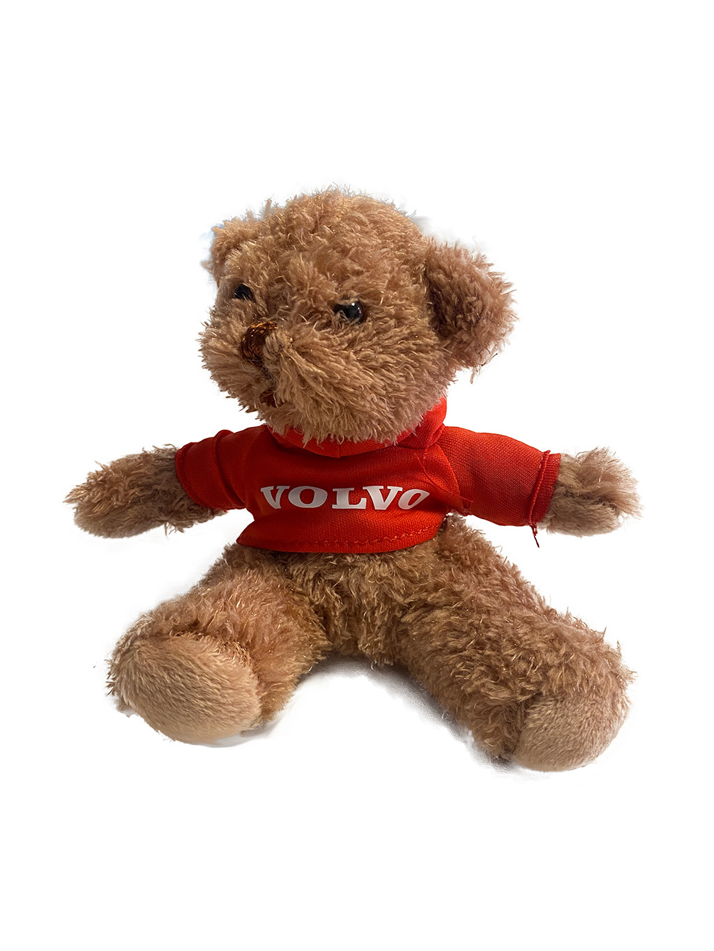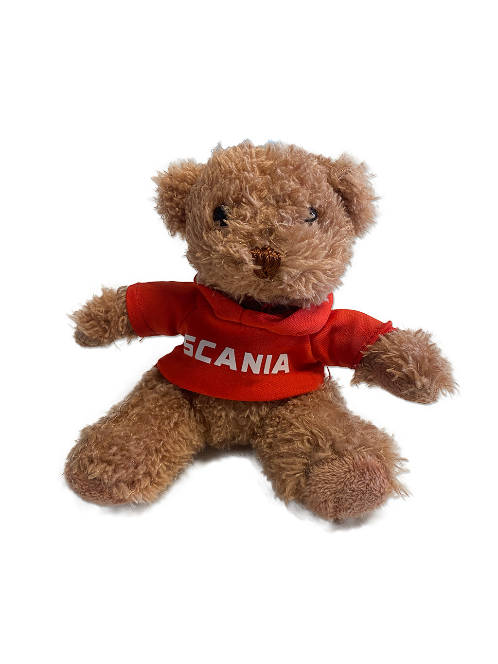 Bear - Red - Different logos is a small soft bear with a logo on it. Choose from Daf, Scania or Volvo. The Bear - Red - Different logos wears a red sweater with a hood with the logo printed on it. Bear - Red - Different logos is 12cm tall and also available with a blue sweater. See related products.