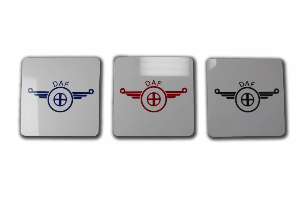 Plaatje met DAF logo bestemd voor 24V lichtbak. Verkrijgbaar in wit/zwart, wit/rood en wit/blauw.