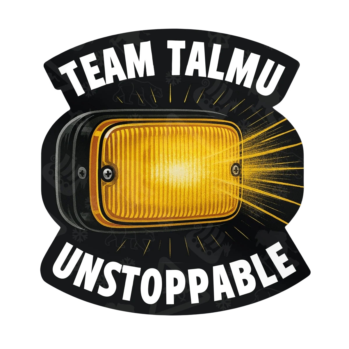 The iconic design featuring the classic Talmu light and the bold Unstoppable slogan speaks volumes. Perfect for your truck, workshop, toolbox, or anywhere you want to show that you belong to the true Team Talmu community. A tribute to the light culture and the unstoppable spirit of Team Talmu.