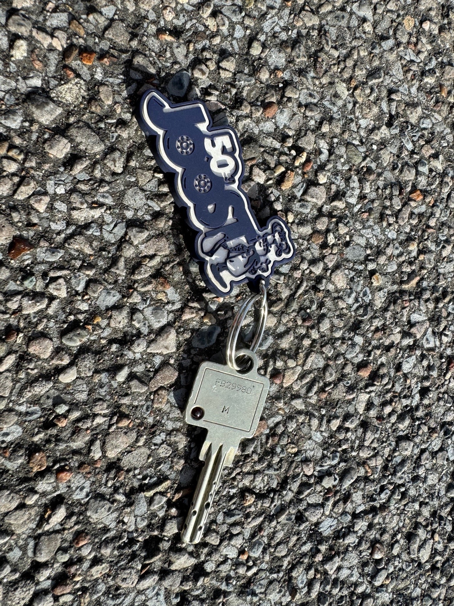 Een rubberen sleutelhanger van ons nostalgisch truckstop logo. Een tijdloze klassieker in blauw-wit ter gelegenheid van ons 50-jarig jubileum.