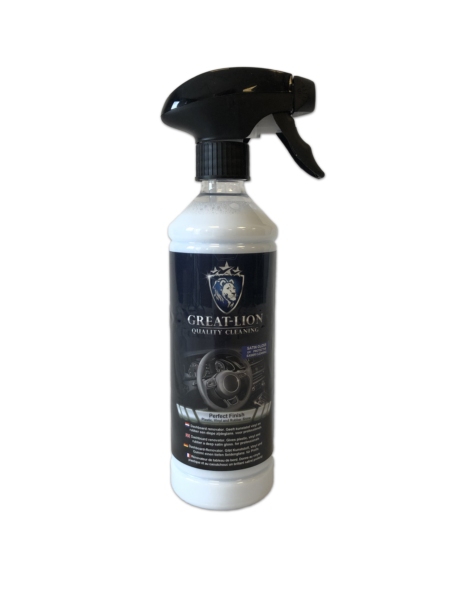 Great-Lion dashboard dressing is een geconcentreerde dashboard cleaner. Dit product geeft de mooie uitstraling van uw dashboard weer terug zoals u die kent van nieuwe auto’s. De dashboard cleaner geeft een zachte zijdeglans zonder dat die extreem gaat glimmen of vettig oogt. De dashboard cleaner geeft een goede bescherming en werkt antistatisch, daardoor zal het resultaat nog langer blijven.