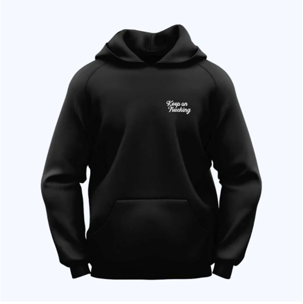 De Hoodie Keep On Trucking - Zwart is een hoodie met capuchon zonder rits vooraan! De hoodie heeft een elastische tailleband en is binnenin afgewerkt met zachte binnenvoering. De Hoodie Keep On Trucking - Zwart heeft vooraan ook een grote buidelzak.