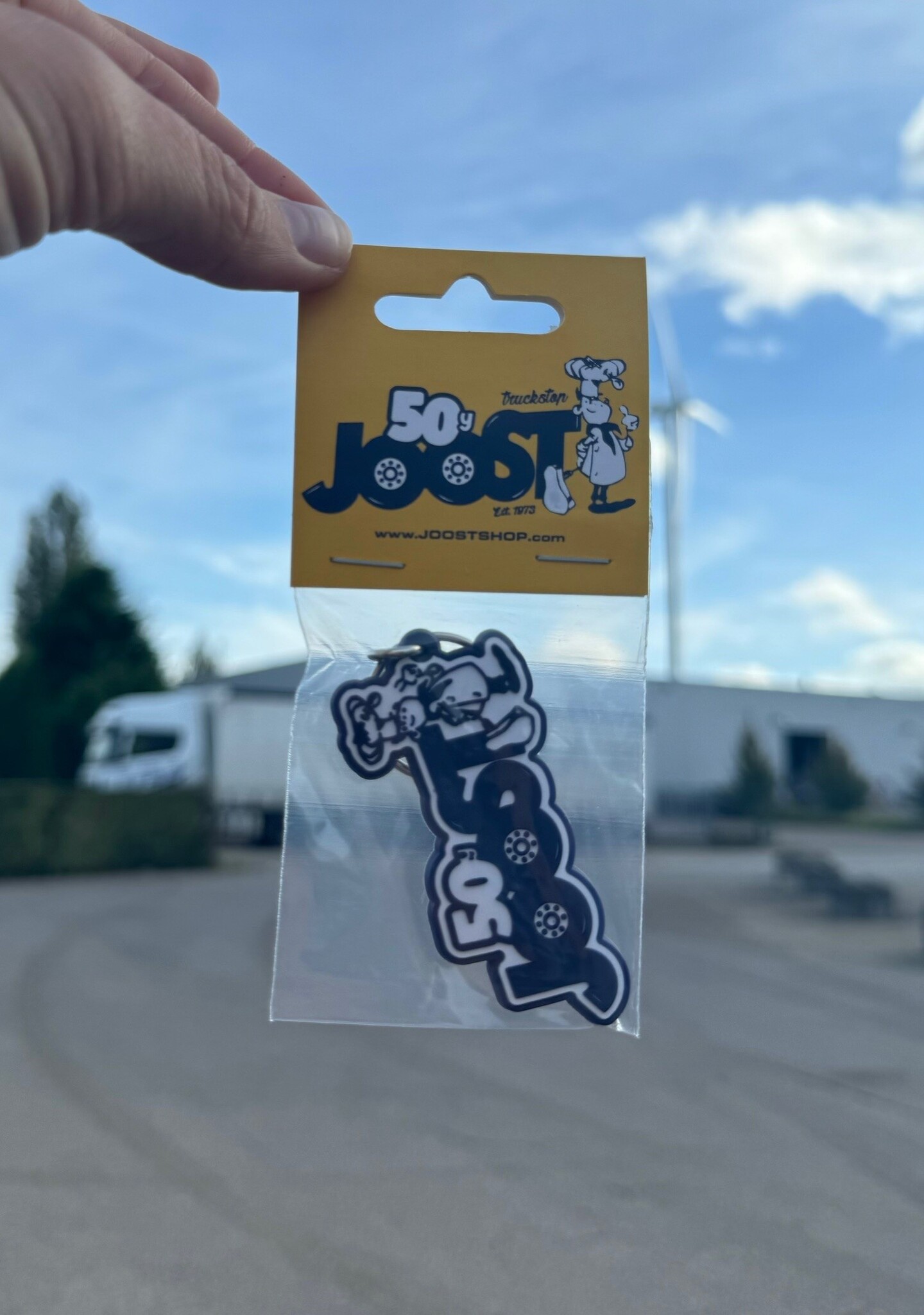 Met deze JOOST 50 jaar jubileum - Sleutelhanger vieren wij dit jaar met veel trots ons 50-jarig bestaan. Hiervoor hebben we een speciaal jubileum logo ontworpen met een portie nostalgie. De kok en de vrachtwagenbanden van vroeger werden er weer in verwerkt. De JOOST 50 jaar jubileum - Sleutelhanger is dus een echt must-have.