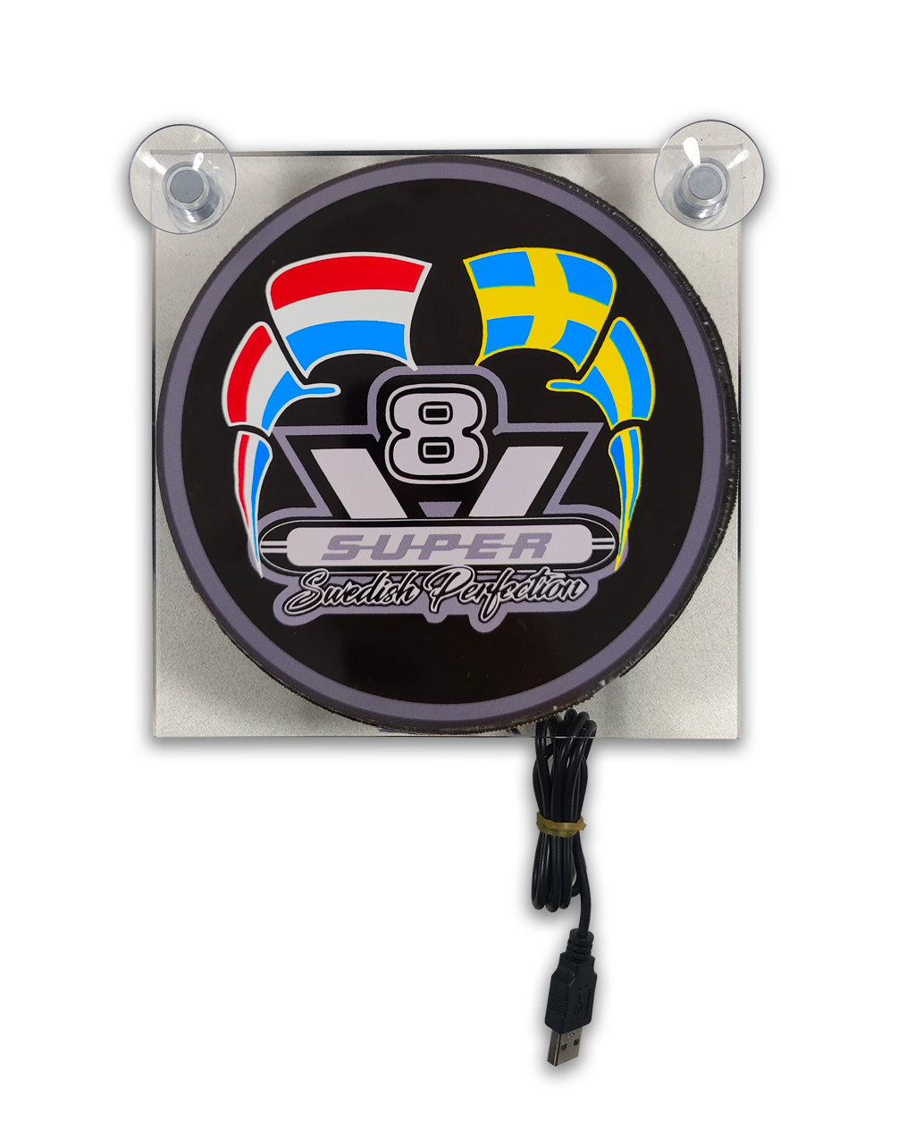 Lichtbakje USB V8 NL-SE 12/24V. 17 x 17cm, inclusief 2 zuignappen.