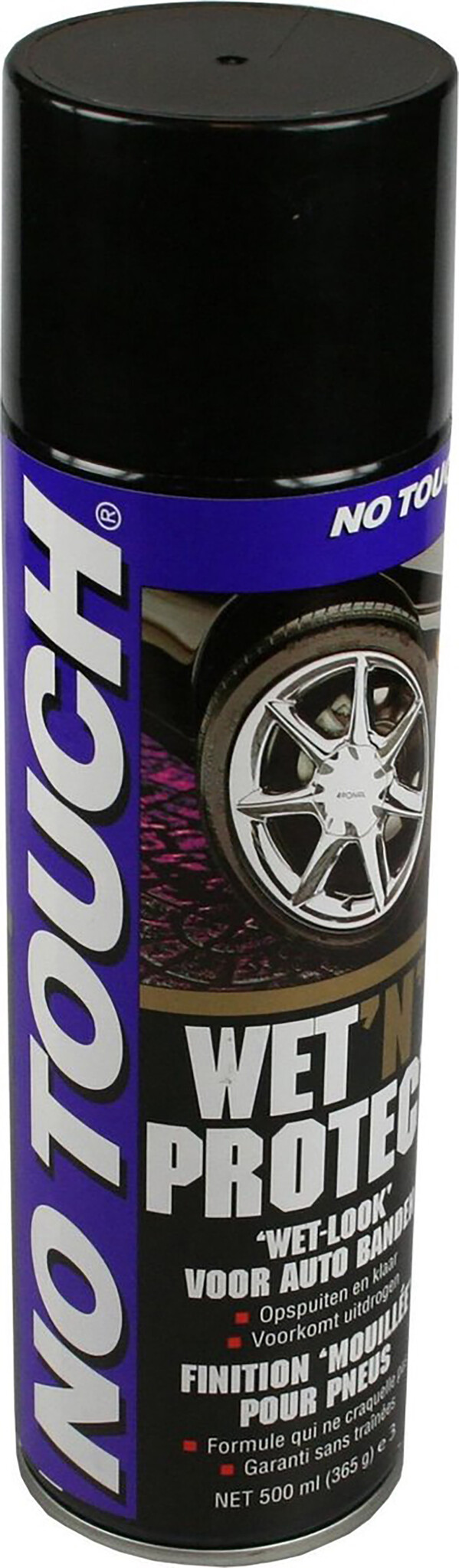 No Touch - Wet N' Protect - Bandenzwart is gericht op het zo snel en eenvoudig mogelijk verkrijgen van een landurige showroomglans op banden. Doffe bruine aanslag hoort met deze spray tot het verleden. No Touch - Wet N' Protect - Bandenzwart kent een extreme glans met wetlook en is daarmee zeer geschikt voor showauto's en klassiekers. Daarnaast beschermt No Touch - Wet N' Protect - Bandenzwart de banden tegen natuurlijke veroudering door UV en ozon, waardoor het product aan te bevelen is voor auto's die slechts zelden buitenkomen. Houdt uw banden in goede staat met de No Touch - Wet N' Protect - Bandenzwart