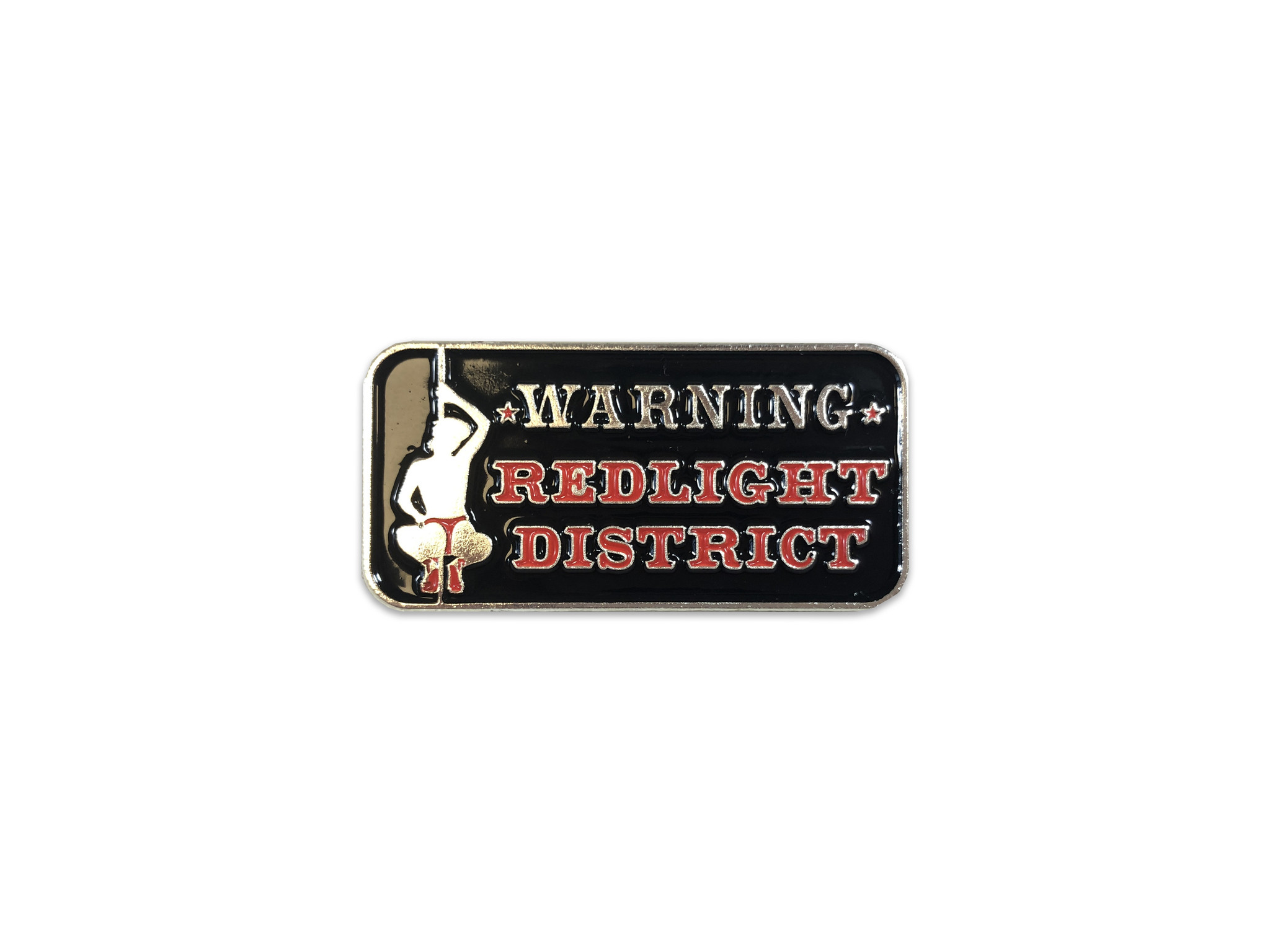 Pin Warning - Redlight district. Afmetingen: 4 x 2 cm Meer informatie