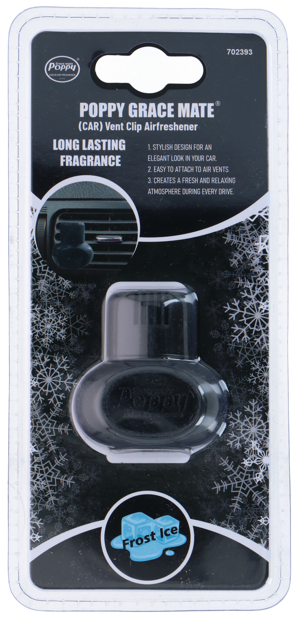 De Poppy Mini - eva is een klein geurflesje gemaakt van kunststof en is ideaal om aan jouw ventilator rooster van jouw auto of truck te hangen. De Poppy Mini - eva is verkrijgbaar in de gekende Poppy Grace mate geuren: Kers, Sandelwood, Vanille, New Car, Lavendel en Frost Ice. De Poppy Mini - eva is ideaal voor iedereen die graag een subtiele luchtverfrisser in zijn/haar auto of vrachtwagen wilt.