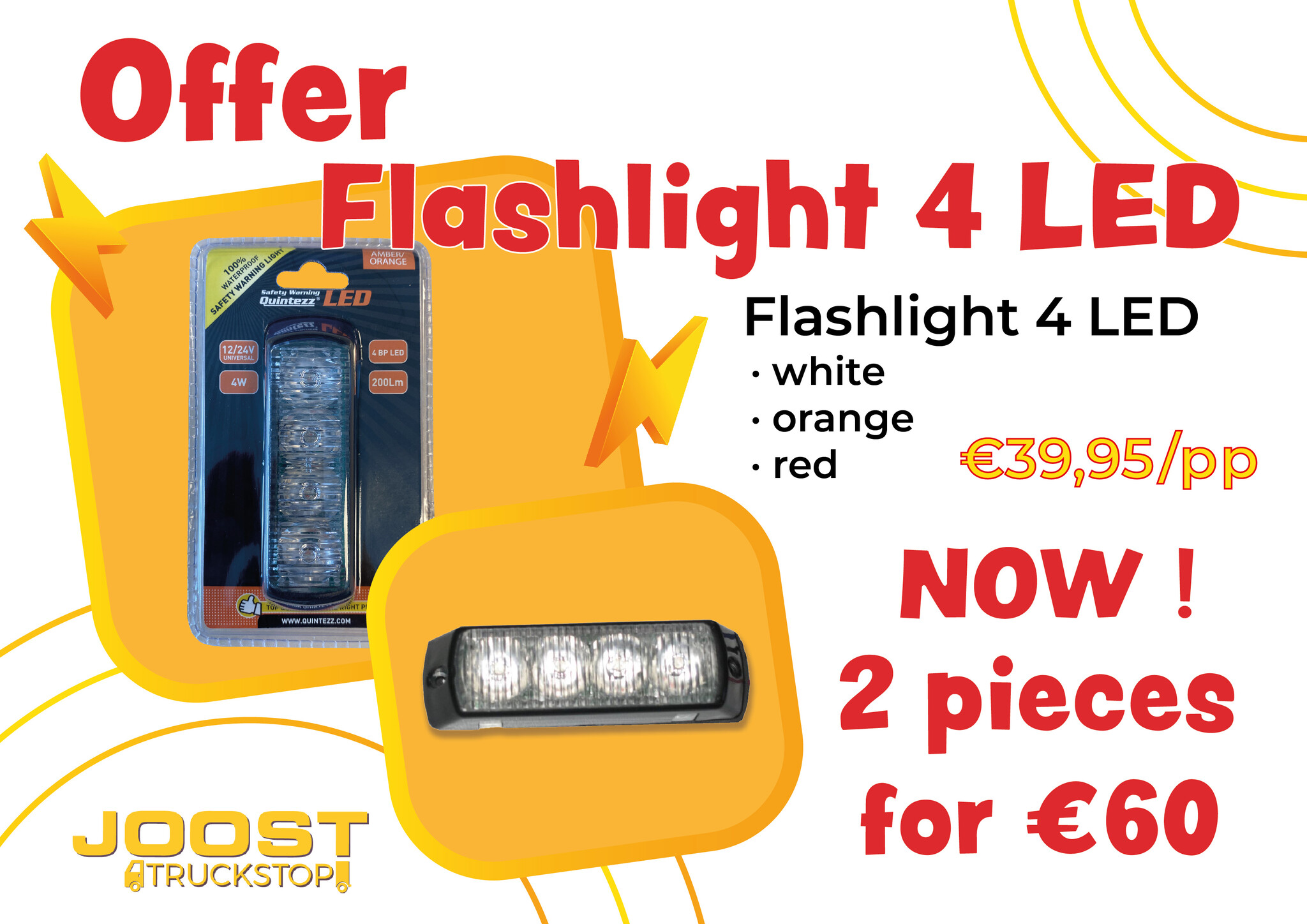 Quintezz Flitslicht 4 (1W big power) LED 12/24V is verkrijgbaar in oranje, wit ...