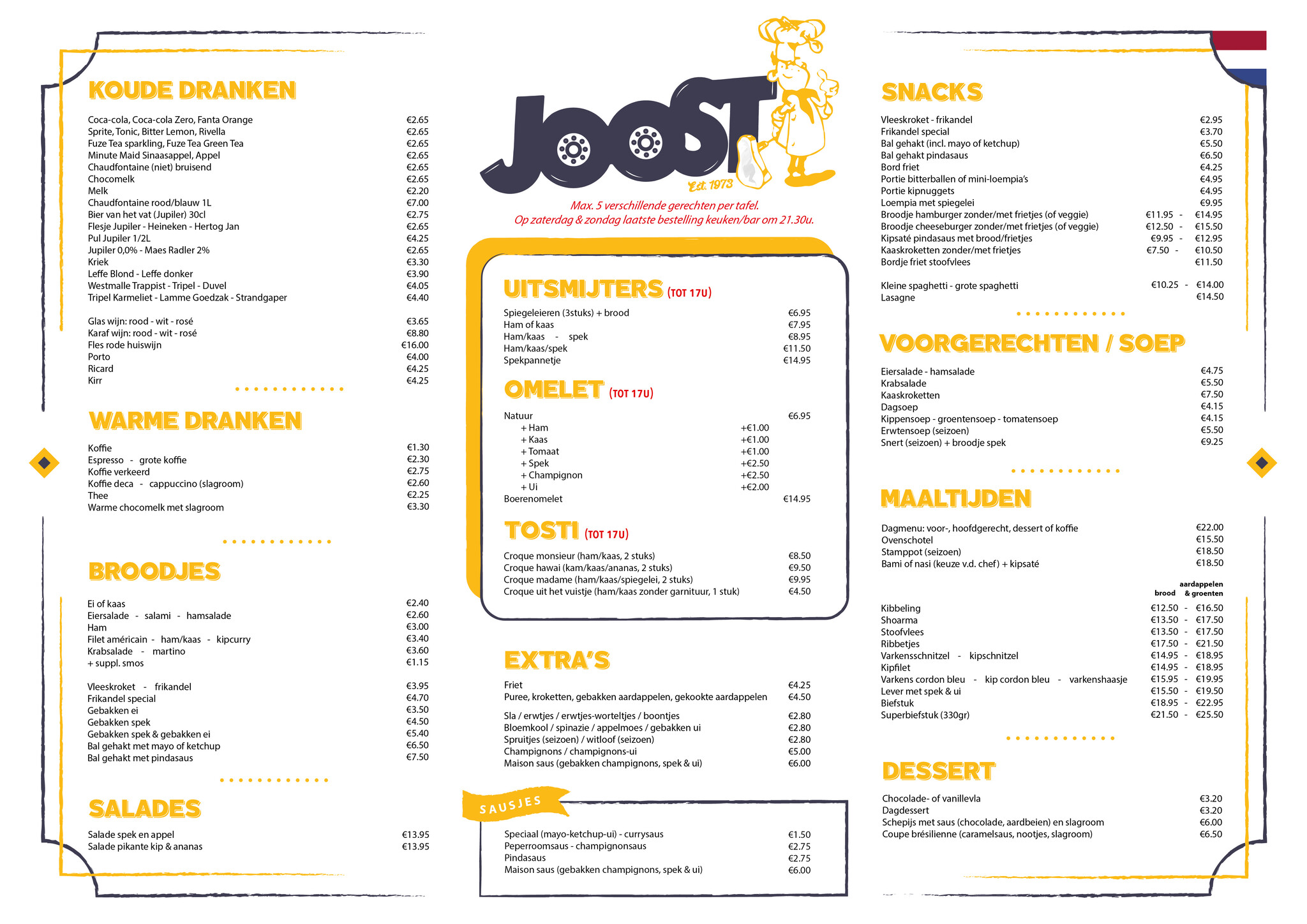 zon 28/12 - 09u - 22u (laatste bestelling 21u30)