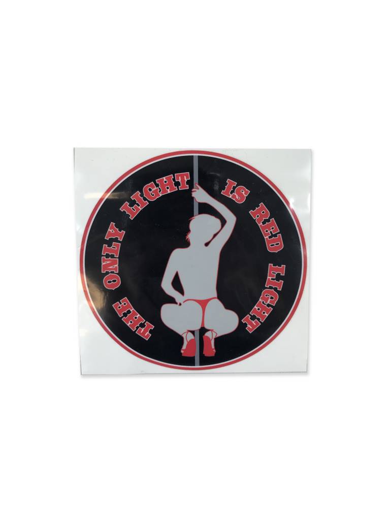 Sticker - The only light is red light - zittend. Afmeting: 10x10 cm