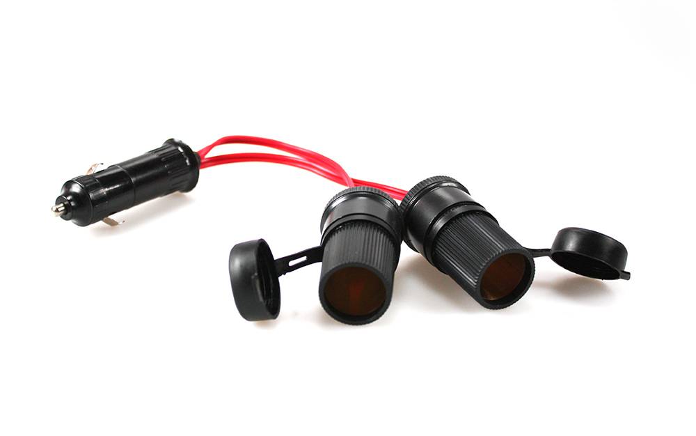 Universeel aanstekercontact met dubbele stekker. Max. 12 ampère.