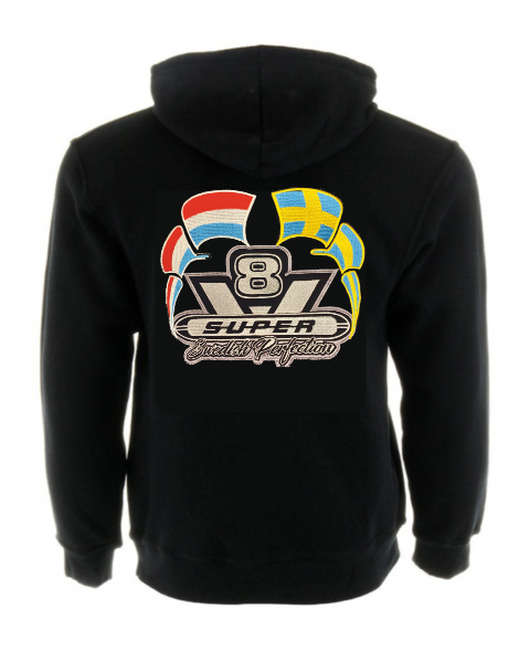 De Vest - V8 Swedish Perfection - Zwart is een vest met capuchon en rits vooraan! De hoodie heeft een elastische tailleband en is binnenin afgewerkt met zachte binnenvoering. De Vest - V8 Swedish Perfection - Zwart valt wat klein, we raden je aan een maat groter te nemen voor een comfortabelere pasvorm.