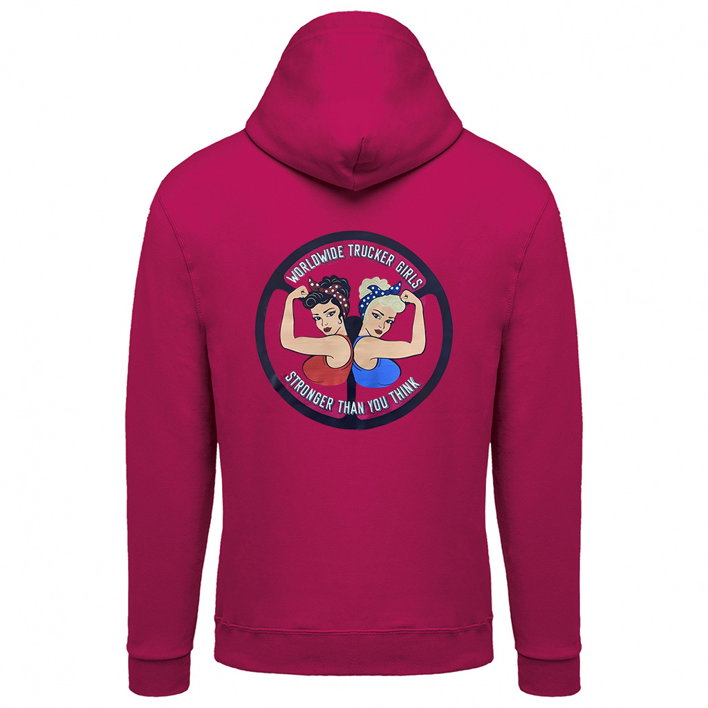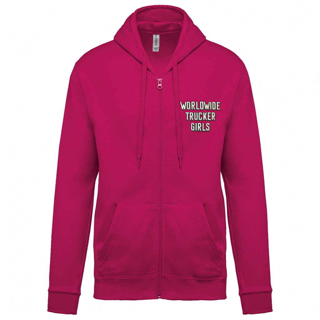 De Vest Worldwide Trucker Girls - Fuchsia is een hoodie-vest met capuchon en rits vooraan. De vest heeft een elastische tailleband en is binnenin afgewerkt met zachte binnenvoering. De Vest Worldwide Trucker Girls - Fuchsia heeft vooraan ook gescheiden buidelzakken.