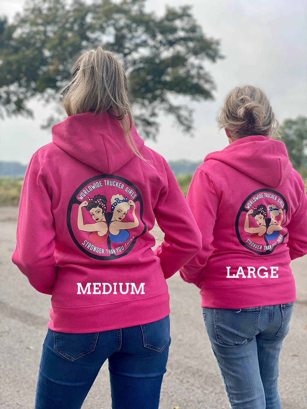 De Vest Worldwide Trucker Girls - Roze is een hoodie-vest met capuchon en rits vooraan. De vest heeft een elastische tailleband en is binnenin afgewerkt met zachte binnenvoering. De Vest Worldwide Trucker Girls - Roze heeft vooraan ook gescheiden buidelzakken.